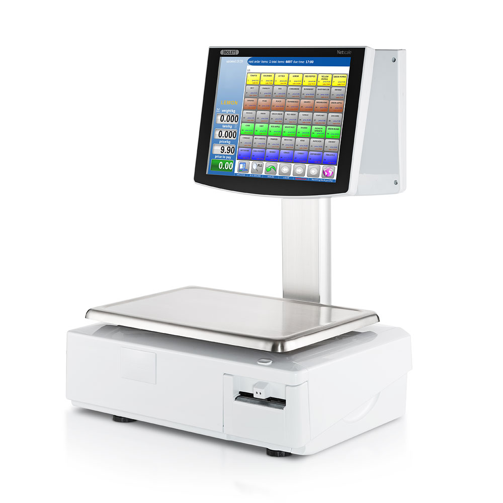 • מדפסת: מדפסת תעשייתית (מובנת במאזניים) להדפסת מדבקות בכל גודל מסוג ליינרלס (Linerless) ונייר טרמי רגיל ברוחב הדפסה 80-60 מ"מ – ניתן לעצב בצורה גרפית את מבנה המדבקות.